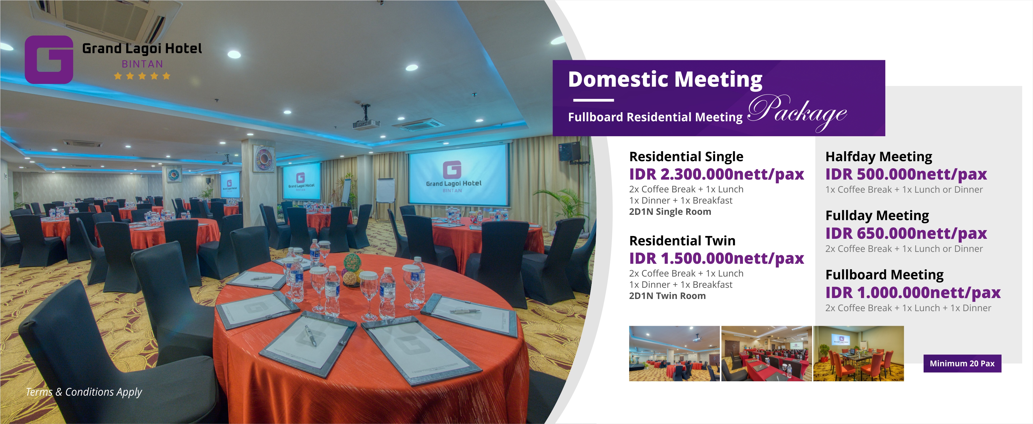 Looking for a professional space with seamless service? Grand Lagoi Hotel Bintan offers the perfect setting with our Domestic Meeting Packages, starting from just IDR 500.000 nett/pax.