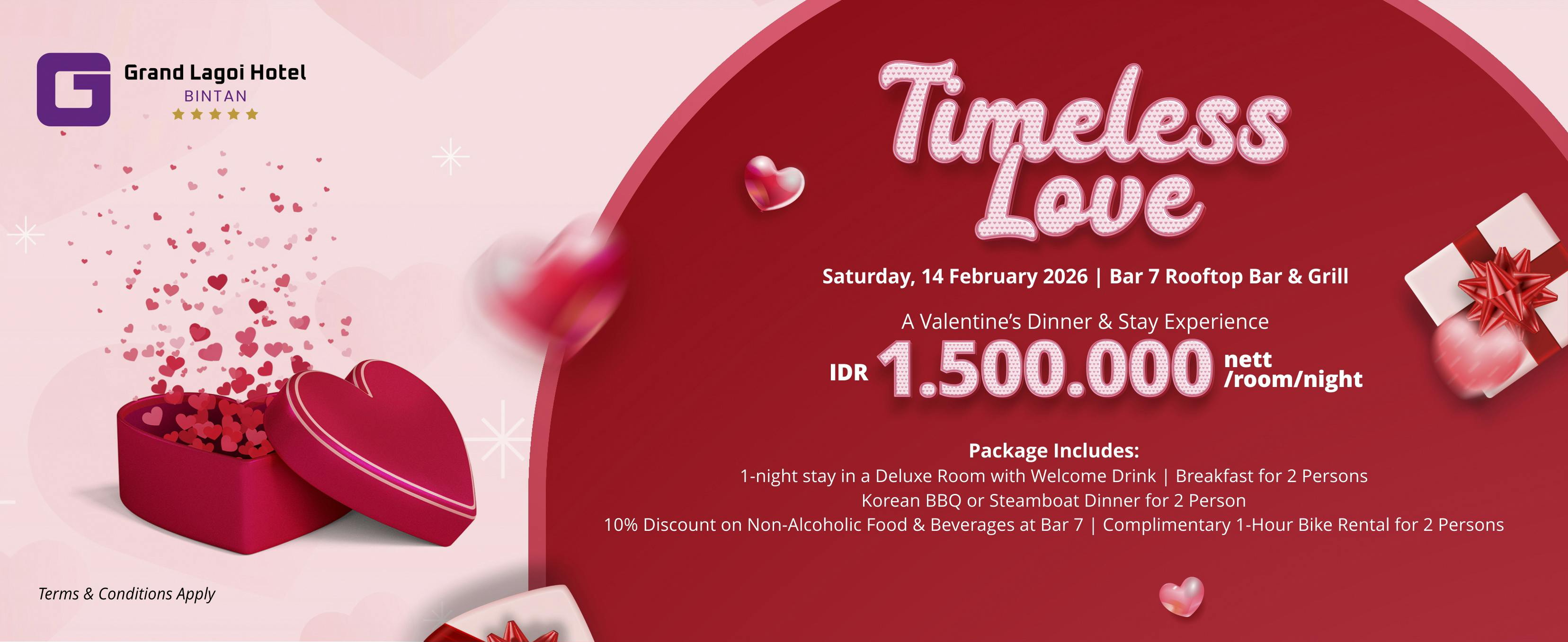 Experience a romantic escape like no other with the Timeless Love – Valentine’s Dinner & Stay Experience at Grand Lagoi Hotel Bintan, thoughtfully designed to celebrate love in an elegant and intimate setting.